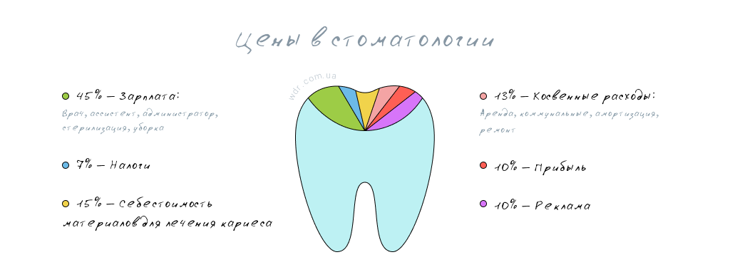 - Размер прибыли. Тут все просто, ценовую политику диктует собственник или директор клиники. Если он достаточно жаден, прибыть за установку пломбы может достигать 50%, а то и больше.
