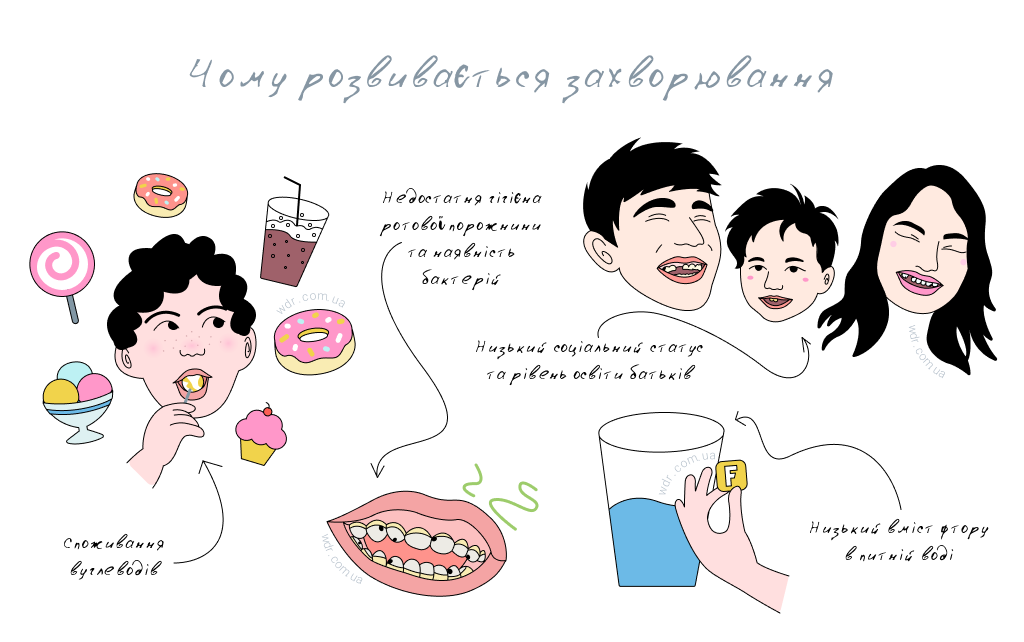 По мірі дорослішання дитини збільшується, як ризик карієсу, так й частота більш тяжких форм захворювання.